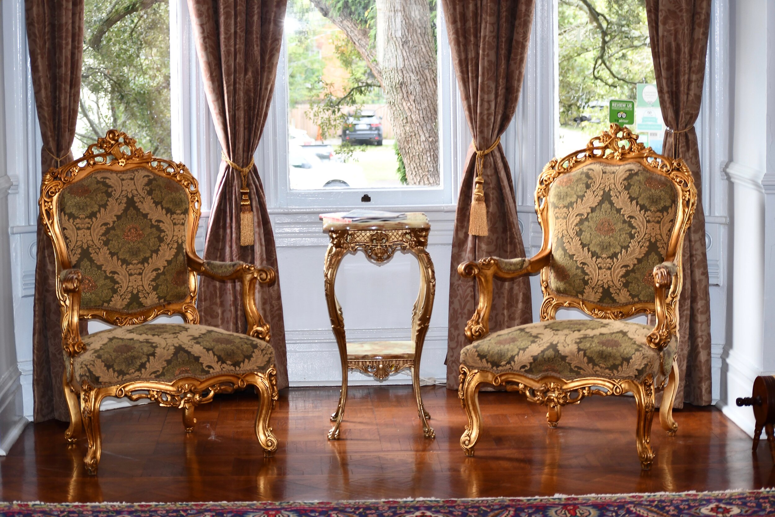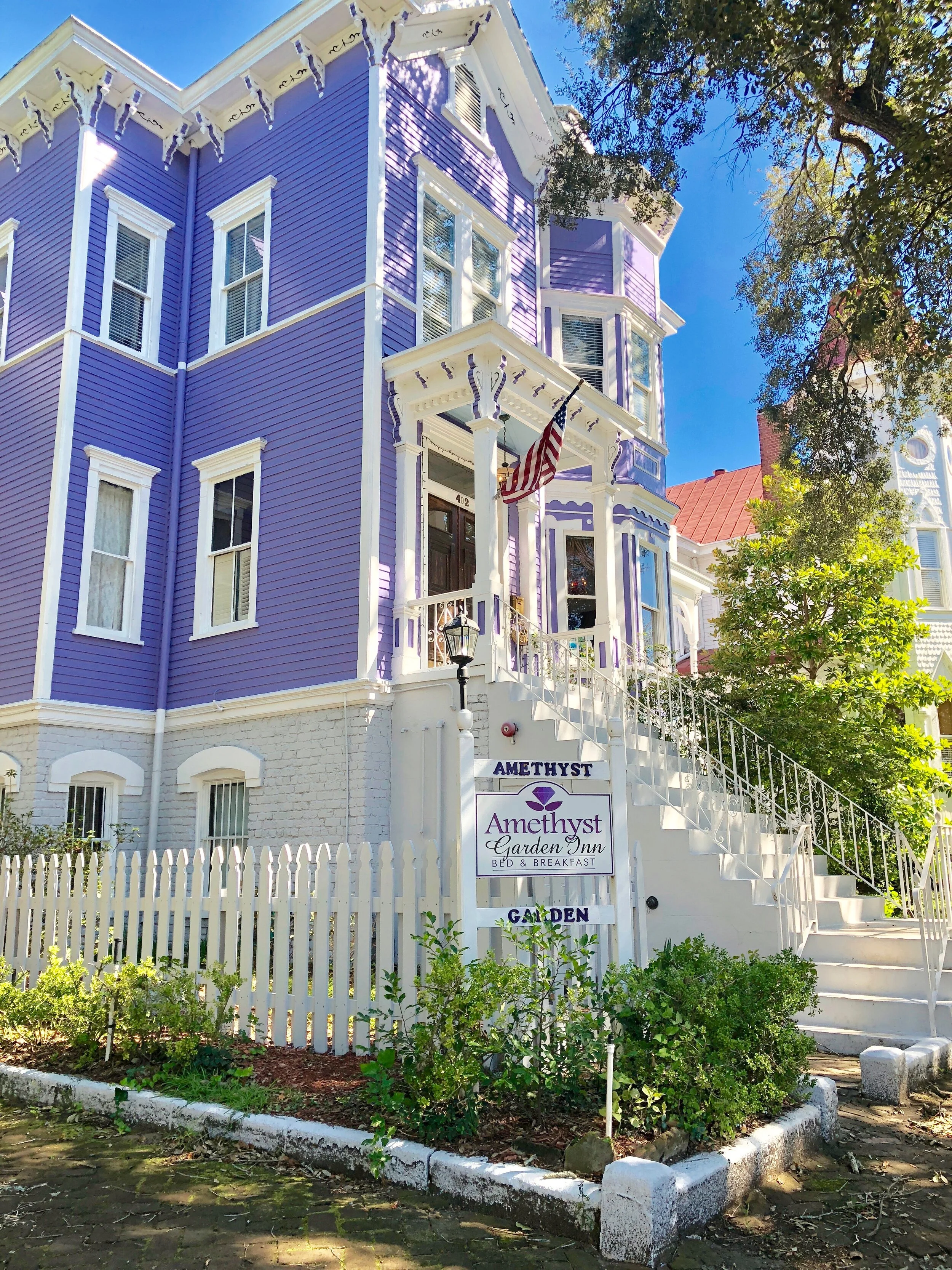 The South consists of a treasure trove of warmer states during THE icy winter months. If you, your girlfriends or significant other are looking for a warm getaway check out the historical Amethyst Garden inn located in Savannah, GA. Known for its friendly culture, charming scenery, and quiet but not boring lifestyle, Savannah as a city is breathtaking. The town is host to a slew of charming inns. So what makes Amethyst Inn so unique and special? Where shall I begin? For one the inn has a magical feel to it. It’s beautiful purple shade and grandiose appearance paired with a garden theme make it stand out from local inns. Upon entrance the aging wood feel and chandeliers give the inn character like a bottle of aged wine. Soft background music, sparkling glass, rich and colorful portraiture come together in a culmination of rustic old world beauty. The Inn consists of 11 luxury rooms and spacious suites. Each room is unique in layout. No two rooms are the same. From intricately designed tapestries, to fireplaces to quaint views of the town from its balconies, Amethyst Inn provides a true luxury home-away-from-home experience. If you’re looking for rest and respite feel free to lounge around its den or pay a visit to its porches overlooking the garden. I had the pleasure of staying at the inn for 5 days in its spacious Magnolia Room. For a group of 3 or more I recommend my favorite room, the Dahlia Suite.