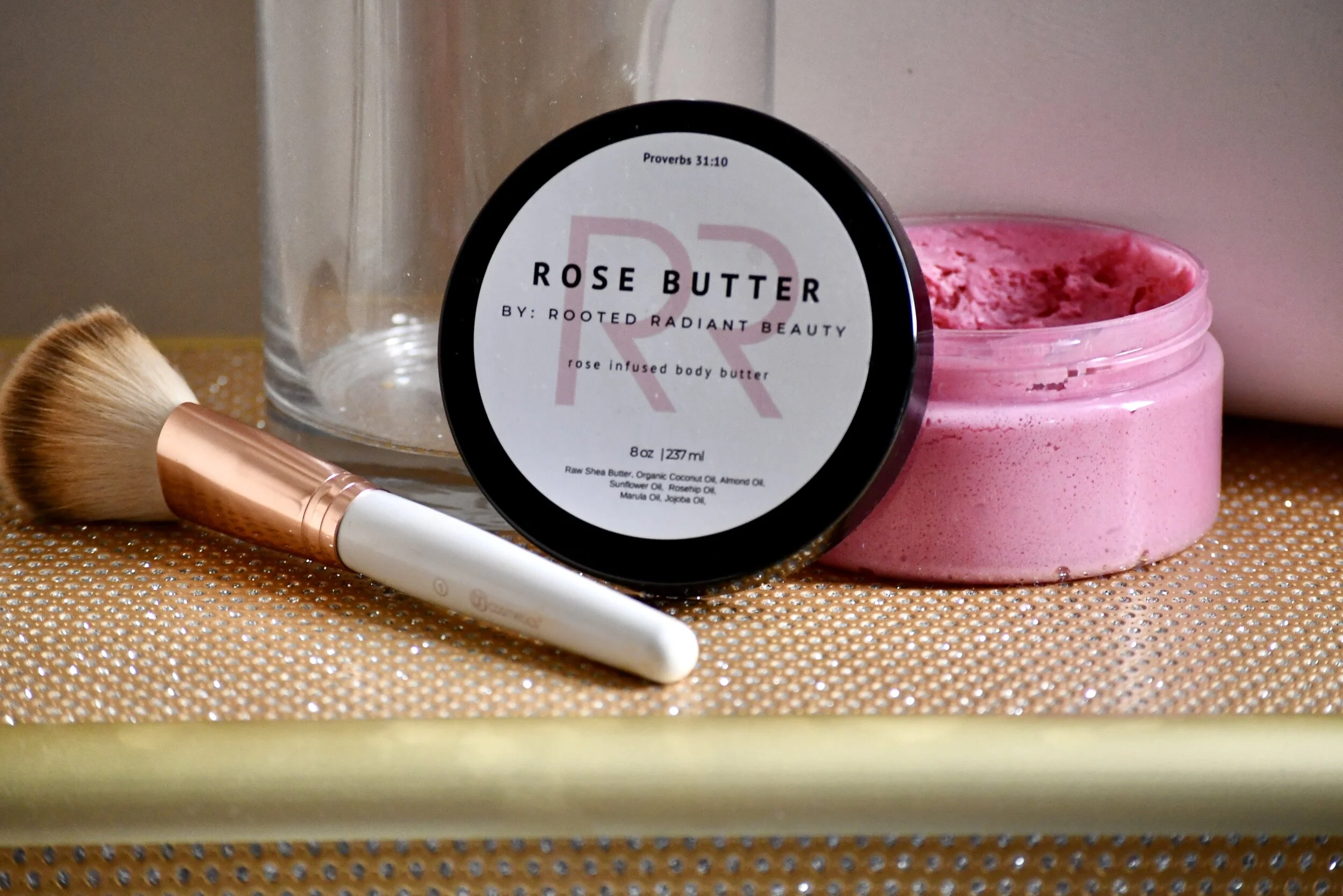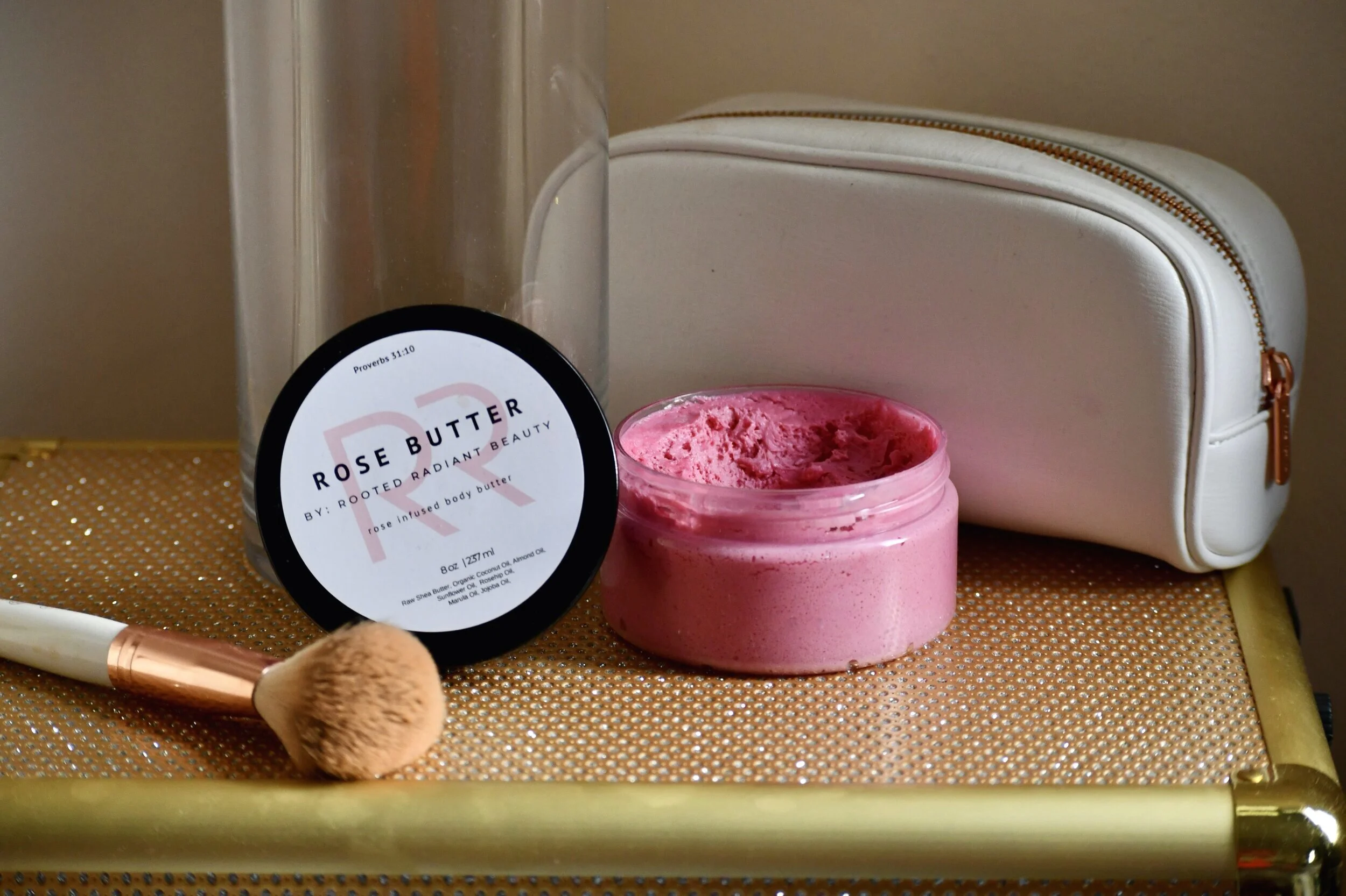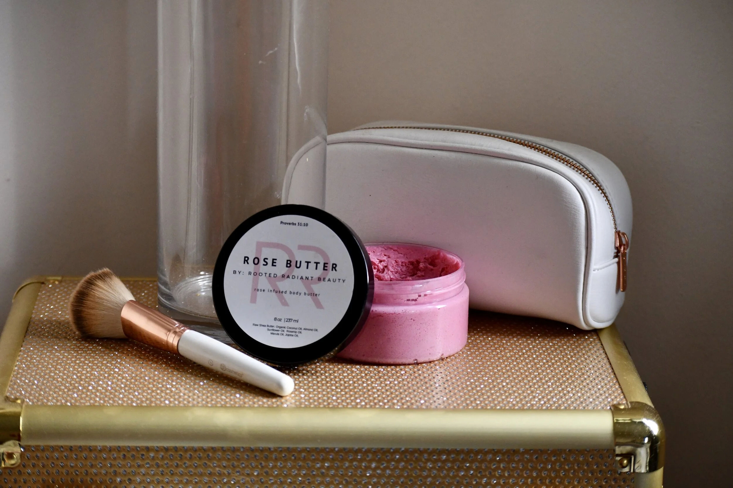 My favorite go-to product is its Rose Butter. A whipped butter concoction, its beautiful texture melts in your hand and is loaded with skin-loving ingredients. While its base is shea butter (if you’ve done research you know that shea butter works wonders for the skin) its primary ingredients include Rosehip oil, Marula oil, Coconut Oil, and Sunflower Oil. All of these ingredients are highly effective in maintaining healthy-looking skin, keeping skin moisturized, and glowing. More importantly, its natural ingredients help in preventing and healing a variety of skin disorders such as psoriasis, eczema, and in some instances acne.